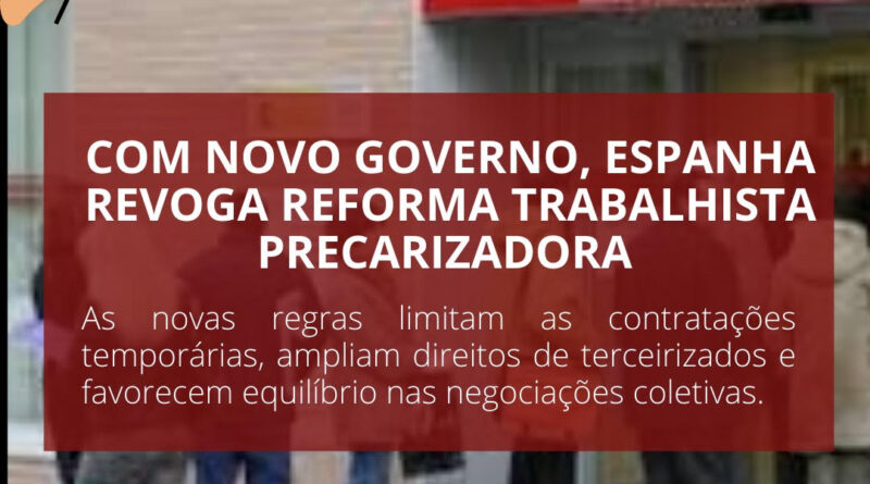 Em 2012, a Espanha implementou ampla reforma trabalhista, estabelecendo diversos mecanismos precarizadores de direitos para tentar combater o desemprego. Dez anos depois, e agora com governo progressista, o país volta atrás. Em 30 de dezembro, novo real decreto-ley estabelece marco legislativo muito diferente do anterior. Trata-se de compromisso do governo do primeiro-ministro Sánchez com a Comissão Europeia, para garantir a próxima parcela de fundos da União Europeia. Atualmente, o país conta com taxa de desemprego de 14,5%, uma das mais altas do bloco econômico.