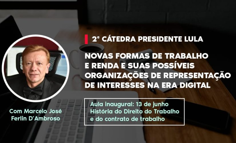Instituto Lula está com novos cursos abertos. O prof. Marcelo Ferlin D’Ambroso esta em colaboração com uma iniciativa de debate sobre o trabalho e suas formas. Participe!https://www.institutolula.org/faca-a-sua-inscricao-no-curso-novas-formas-de-trabalho-e-renda